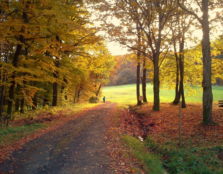 Mein Steigerwald Ich mag die hohen Berge ja schon mit steilen Zacken und Höhen, kann mich an sie, trotz Urlaubsfreude, so richtig nicht gewöhnen. Viel lieber aber,mehr fürs Herz, ist doch mein Steigerwald, mit grünen Bergzügen, langgezogen, in seiner Baumvielfalt. Zu jeder Zeit zieht's mich zu ihm hin, wenn aufwacht neues Leben, und das junge, helle, frische Grün ausschlägt an alle Bamm. Im Sommer (wenn) heiß die Sonne runterbrennt, halt ich mich gern bei ihm auf. Da läuft sich's leicht und ruht sich gut, an seiner Bächlein Lauf. Wenn Malermeister Herbst kommt, wird feurig bunt sein Kleid, dies Rot, dies Gelb, dies Dunkelbraun, eine richtige Augenweide! Im Winter erst, bei Eis und Frost, wenn Schnee liegt auf den Bäumen, da läufts du dort in die Stille hinein, du meinst, du bist im Traum. Seine Höhen, die haben mir's angetan, der Zabelstein vorne dran, an den Friedrichsberg, ans Murrleinsnest an den Schwanberg denk ich da. Durch stille Täler wanderst du gern, genießt Waldeinsamkeit, Zieht Ruhe und Frieden in dir ein, dein Herz und Sinne werden weit. Die Dörflein, hineingeduckt in den Wald, die Zeit ist dran vorbei, die sind ein Stücklein von ihm geworden, eine stille Einsiedelei. Ein edler Kranz der besten Sorte von Wein wächst an seinen Hängen, da tust du gern, bist unterwegs, gezielt deinen Gang hinlenken. Da gibt's einen Wein, das musst dir merken, für Leute, die was verstehen, ist erdig, fruchtig, voller gehalt, lässt alle Sorgen vergehen. Ich mag ihn gern, meinen Steigerwald, mit Wäldern, Wiesen, Wein, und wenn ich nur ein bisschen kann, mach ich mich für ihn frei. |